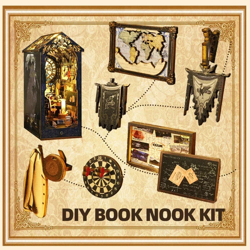 – mini Bibliothek des berühmten Detektivs in deiner Bibliothek! Präzise geschnitzte Holzteile, sensorisches LED-Licht 💡, Vintage-Möbel und Dekorationen 📚. Für Kreative ab 14 Jahren 🎨 – stilvolles Geschenk und atmosphärische Dekoration.