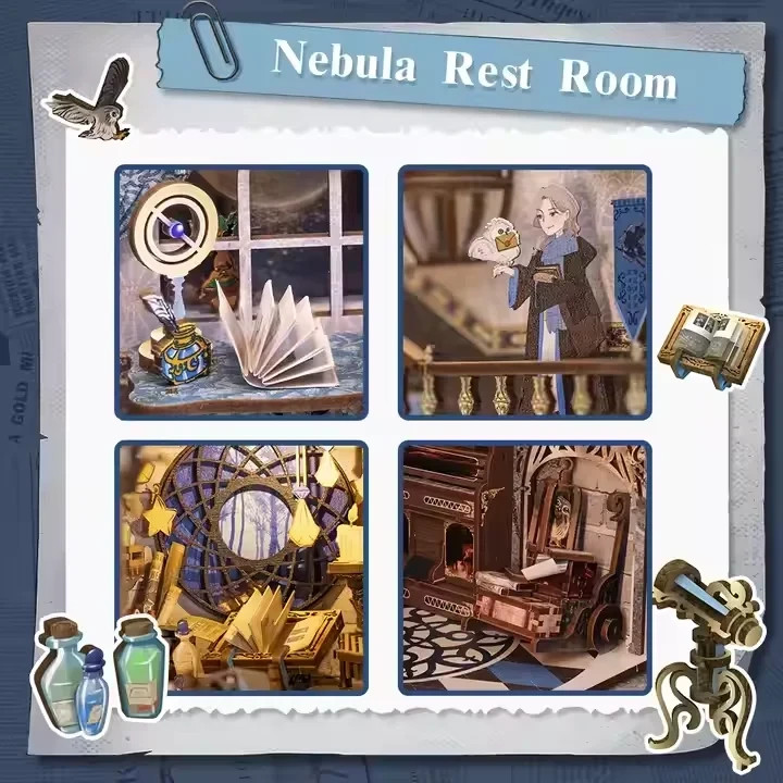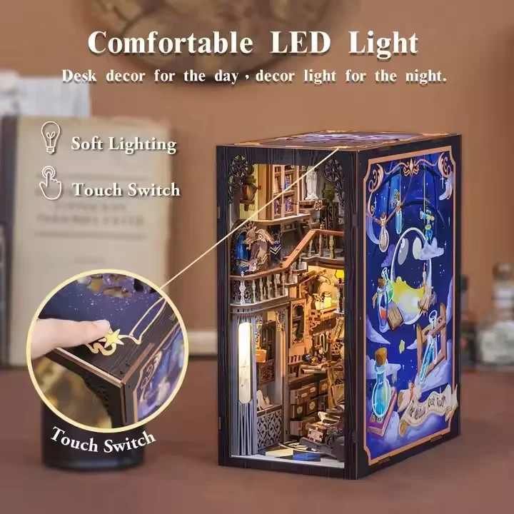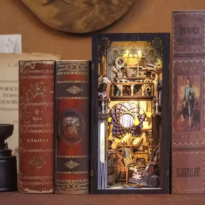 Verwandle deine Bibliothek in ein Tor zur Fantasiewelt! 🏰 Dieses detaillierte DIY-Set ermöglicht es dir, dein eigenes beleuchtetes Diorama zu erstellen, das zwischen Büchern wie eine geheimnisvolle Gasse aus einer Märchenstadt eingeschoben wird. 📖✨ Jedes Stück – von Miniaturbibliotheken bis hin zu leuchtenden Laternen – baust du selbst. Alles ist übersichtlich gekennzeichnet und mit einer detaillierten Anleitung versehen. Nach dem Zusammenbau dient es als wunderschönes Dekorationselement, das jeden Bücherwurm oder Fantasy-Fan anzieht. 🧚♀️🪄