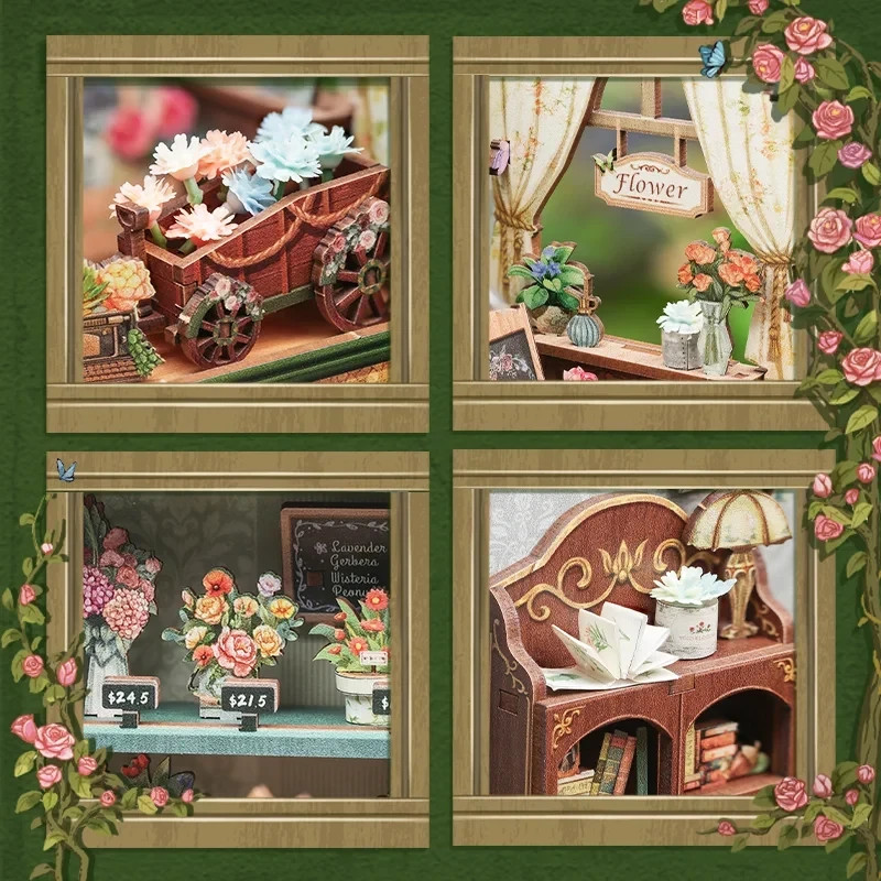 Entdecken Sie den Zauber der Miniwelt mit dem CUTEBEE DIY Miniaturmodellset Malerisches Blumengeschäft. Dieses kreative Baukasten enthält perfekt lasergeschnittene Holzstücke, kleine Zubehörteile und Beleuchtung für einen realistischen Effekt. Alles ist übersichtlich nummeriert, sodass der Bau auch ohne Kleber (gegebenenfalls mit etwas zur Sicherheit) einfach ist. Das fertige Häuschen dient als stilvolle Dekoration für ein Regal, Nachttisch oder Schreibtisch.