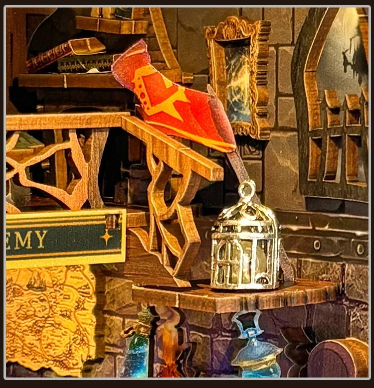 ✨ Tauche ein in die Welt der Magie mit dem Book Nook Zauberschule! Diese 3D-Holzminiatur-Szene (17 × 11 × 26,4 cm, ca. 1,2 kg) fängt eine zauberhafte Akademie voller Details ein – antiker Schreibtisch, magische Fläschchen, magische Türen 🌀 und mehr. Enthält Laser-Cuts, Elektronik und umweltfreundliche Tinten-Drucke. Teil des Pakets ist eine magische Fernbedienung, die die Modi der dreifarbigen LED-Beleuchtung 💡 wechselt, und eine ausziehbare Staubschutzabdeckung zum Schutz vor Staub youtube.com. Das Projekt bietet eine angenehme Herausforderung – der Zusammenbau dauert 4–6 Stunden, etwa 223 Teile mit durchschnittlichem Schwierigkeitsgrad ★★★☆☆. Geeignet für kreative Enthusiasten ab 14 Jahren – fördert die Feinmotorik, Konzentration und ästhetisches Empfinden.
